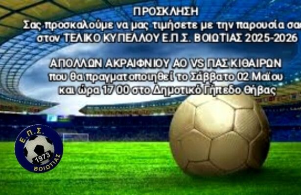 Διεξαγωγή Ημιτελικής Φάσης Κυπέλλου Ε.Π.Σ. ΒΟΙΩΤΙΑΣ 2025 – 2026